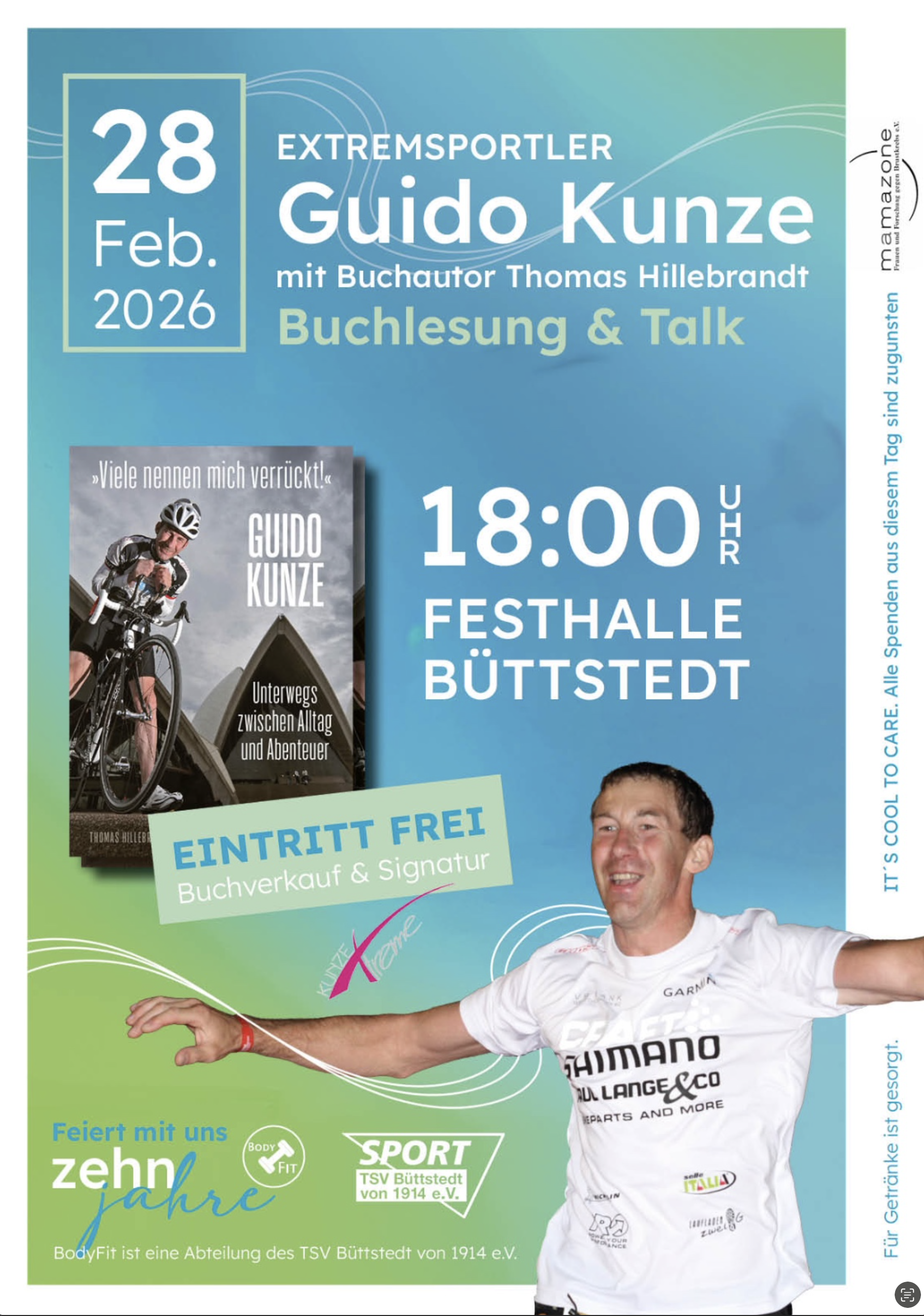 Guido Kunze mit Buchautor Thomas Hillebrandt "Viele nennen mich verrückt!" Eintritt frei, 18:00 Uhr in der Festhalle BüttstedtBuchverkauf & Signatur