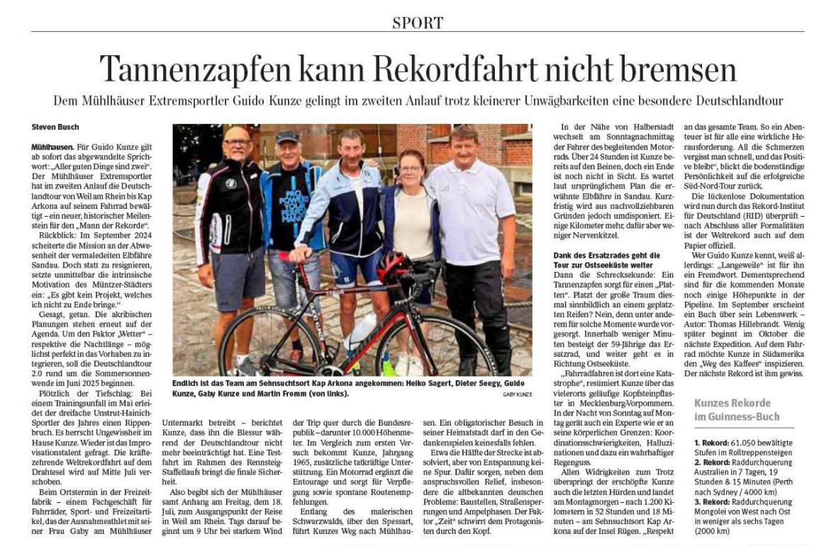 Ich danke herzlich meiner Frau Gaby, Heiko Sagert und Martin Fromm, die mich mit dem Motorrad begleitet haben und Dieter Seegy, der das Wohnmobil gelenkt hat. Es war ein tolles Team, die super Zusammengearbeitet haben. Auch für sie, war es nicht leicht. Denn, wenn ich 2 Tage durchfahre , haben auch sie keine Pause. Daher war es eine tolle Teamleistung, herzlichen Dank 🙂. Natürlich auch allen meinen Unterstützern, ohne sie gebe es solche Projekte nicht.